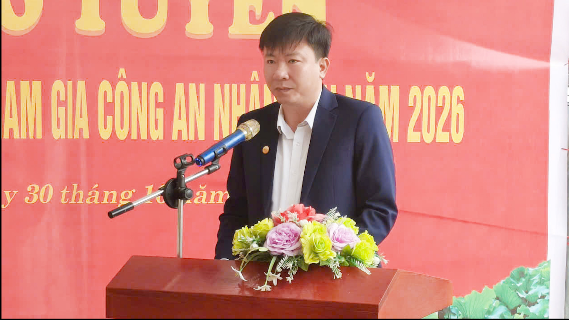 Đồng chí Lê Hồng Thanh, Chủ tịch UBND xã, Chủ tịch Hội đồng nghĩa vụ quân sự xã,phát biểu chỉ đạo động viên các công dân tham gia khám sơ tuyển