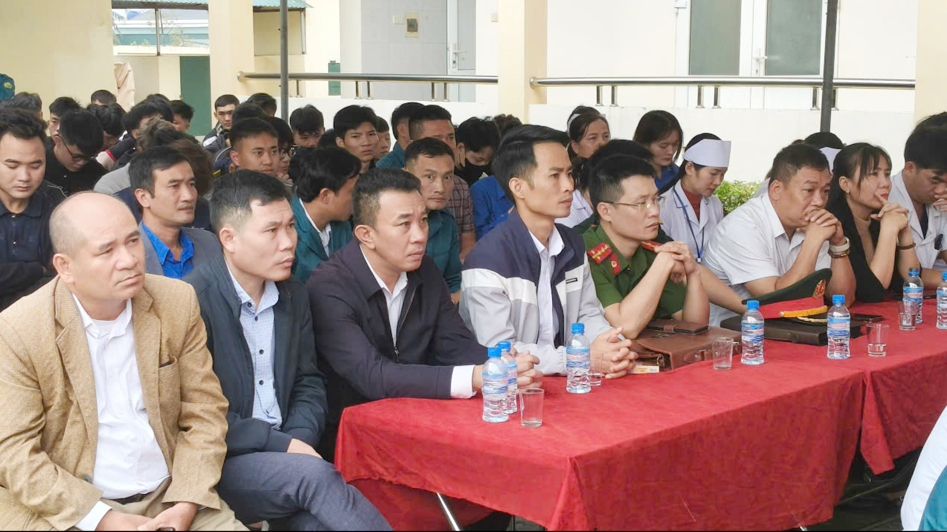 Đồng chí Lê Văn Thông, Bí thư Đảng ủy chủ tịch HĐND xã, đồng chí Nguyễn Văn Thanh Phó Bí thư Thường trực Đảng ủy xã đồng chí Lê Hồng Thanh, phó Bí thư Đảng ủy chủ tịch UBND xã, cùng các đồng chí lãnh đạo xã và đại biểu tham dự khai mạc khám sơ tuyển.